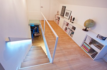 Schody SI-12 Konstrukcja: schody półkowe Balustrada: drewniany pochwyt przyścienny Drewno: dąb wybielony olejowany « powrót Realizacje