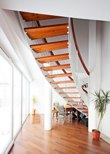 stal malowana i poręcz drewniana