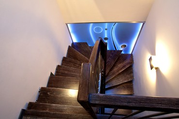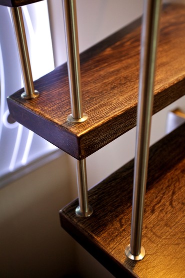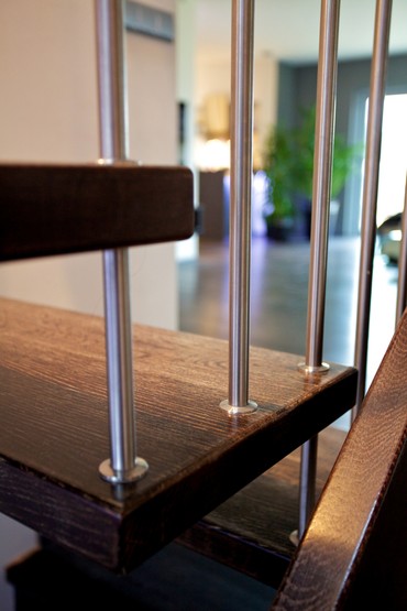 drewniana, wypełniona pionowymi rurkami ze stali nierdzewnej