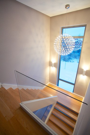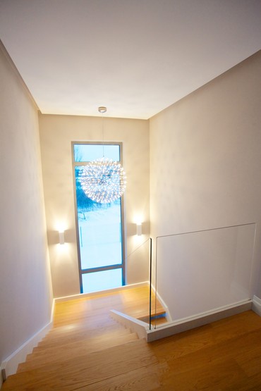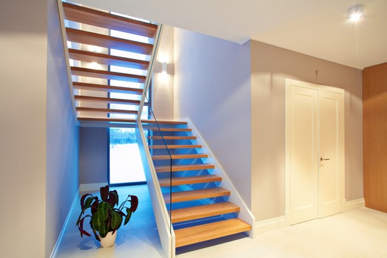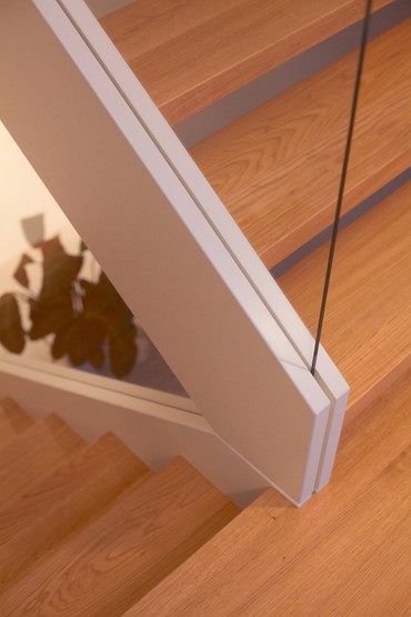 Schody ST-33 Konstrukcja: samonośna, policzkowa, ażurowa Balustrada: szyby hartowane Drewno: dąb bejcowany i malowany na biało « powrót Realizacje